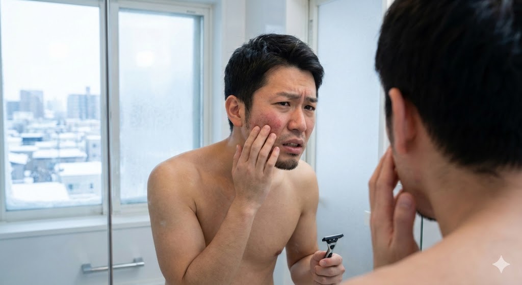「寒くて肌が乾燥しているせいか、髭剃りが痛い」